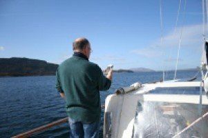 Next morning, perhaps a little stung by my breakfast comments on scuttlebutt, jimi also made breakfast. Excellent. We set off down the loch shortly after in bright sunshine and clear blue sky. Someone said later than Scotland was showing off to us. Breathtaking scenery. It an hour or so for the gps to wake up, though.