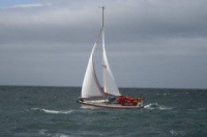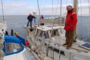 Then a call from Shard a mile or so behind us. He'd heard a strange noise under his cockpit, from the prop, daren't use the engine and so can't get into the port. We offer to tow him in alongside, and he readily accepts.