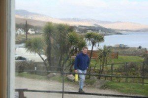Ashore, the lady up at the reception building announces that a short stay is £8. She stays at the far end of the office as she says this, wary of our reaction. But by then I had successfully used the loos for the first time in several days, and £8 won't even cover the call-out charge for the plumber they probably now need. I pay the £8. LJS and I go to the pub. Claysie and the others again daren't go into a pub for fear of inadvertently having six lagers each. LJS and I have orange juice and cokes, and I avenge the darts drubbing on Colonsay by thrashing him six-nil at pool. More lovely views from the pub, again.