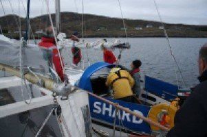 In calm water on the west coast of Colonsay we tied Shard alongside Claymore. Unfortunately, we didn't have a salvage contract on board, so Sgeir still owns the boat. Claysie's mate Muzzy piloted the makeshift catamaran to a smooth landing and a round of applause.