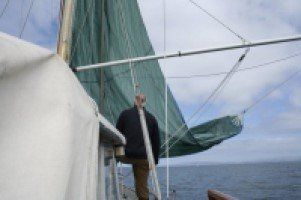 I took a turn at the helm as the wind built to around 25knots. I did try to encourage the crew to put on more speed but they seemed unenthusiastic. Nether LJS nor jimi would sit on the rail, nor were they keen on my suggestions of running off the water to save weight, or chuck the others overboard. You can't trapeze on an 8 ton boat, they scoffed. I sulked a bit. Cos I mean, 400kilos of people is 5% of the weight so putting that at one side or the other has got to make a difference, hasn't it? Then they started suggested reefing, to wind me up some more. Pah!